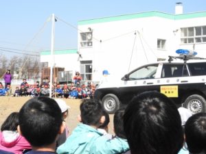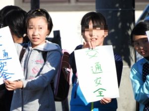 「交通安全でお願いしま~す」と子どもたちの声も響いています。
