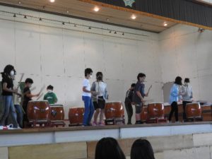 先輩から後輩への「校歌」の学び合いの授業がおこなわれました。